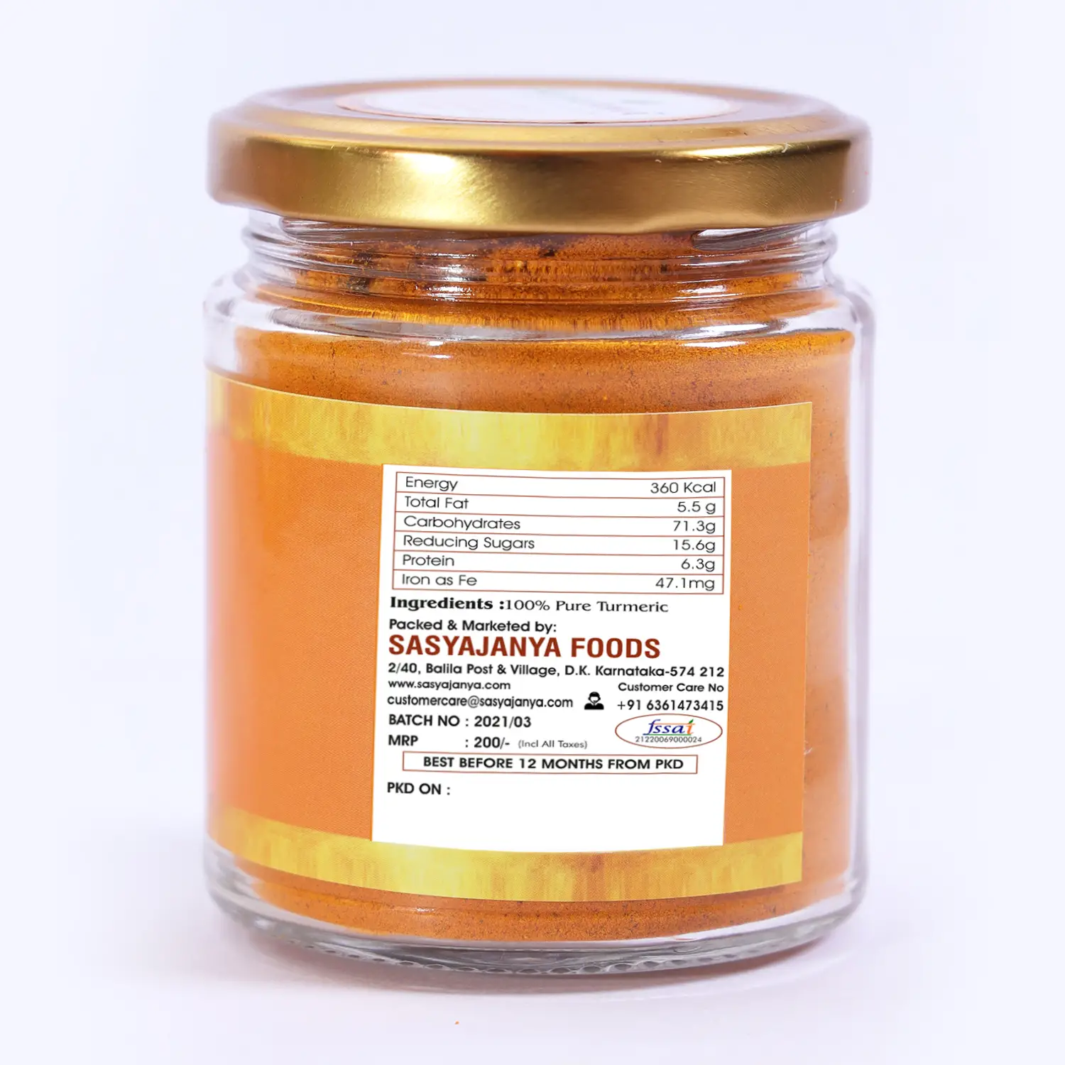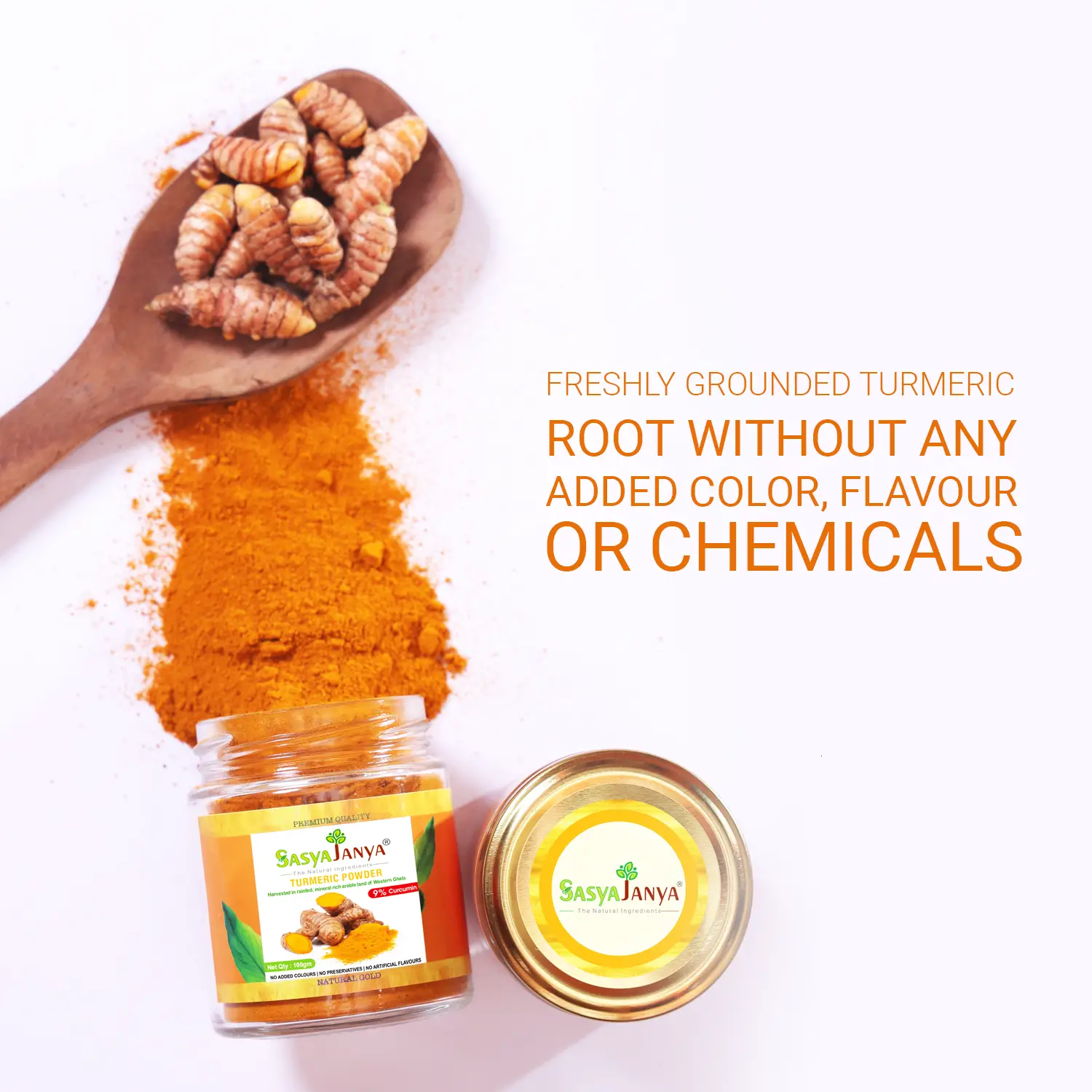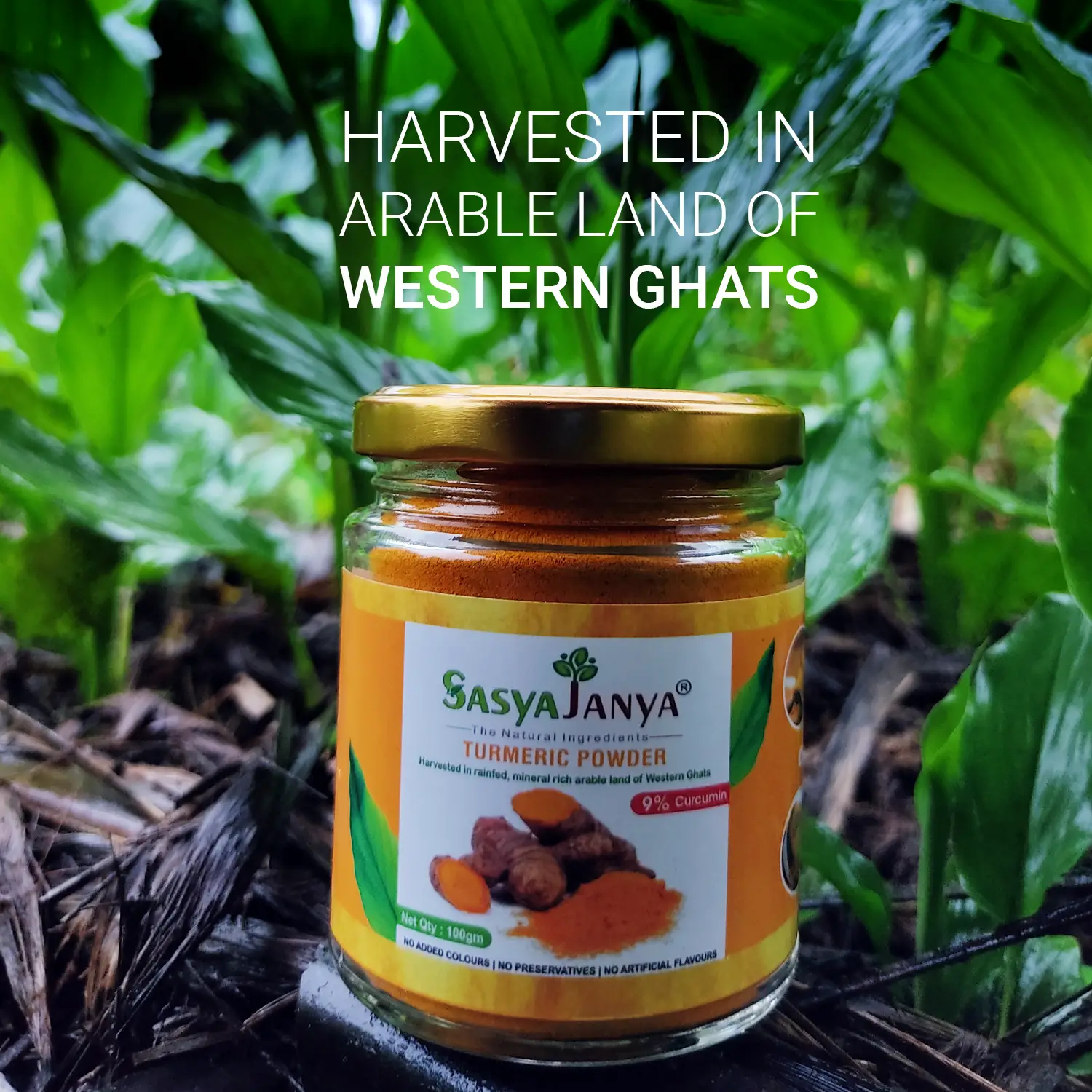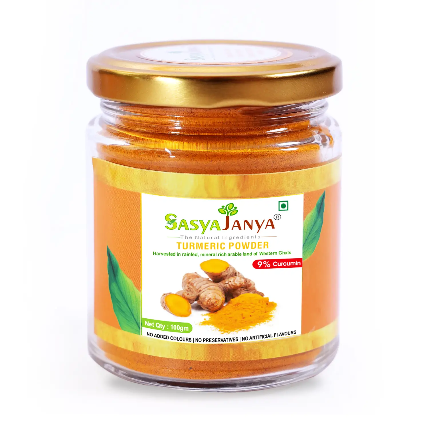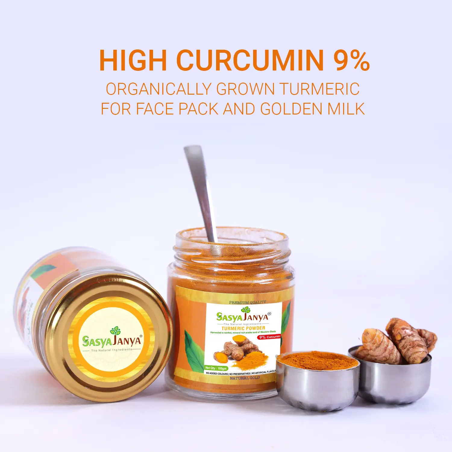 • The CURCUMIN content is 9% in Sasyajanya Turmeric powder.