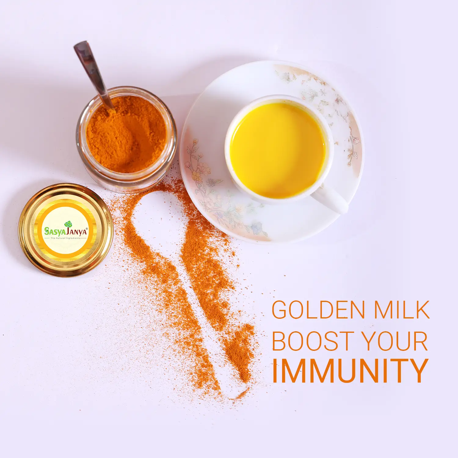 • Boosts IMMUNITY: CURCUMIN is main compound present in turmeric with anti-bacterial, antiviral and anti-fungal properties which stimulates the human system. Having a half teaspoon of this yellow spice with a glass of warm milk daily will reduce your chances of catching flu.